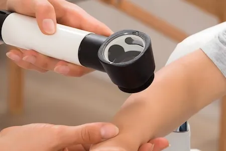 Физикальный осмотр позволяет выявить характерные высыпания, следы расчесов, признаки вторичной бактериальной инфекции. Помимо этого, врач может предположить наличие сопутствующих патологий, которые могут провоцировать почесуху или отягощать ее. Если ребенок оказался на приеме у дерматолога, врач проводит дерматоскопию высыпаний.